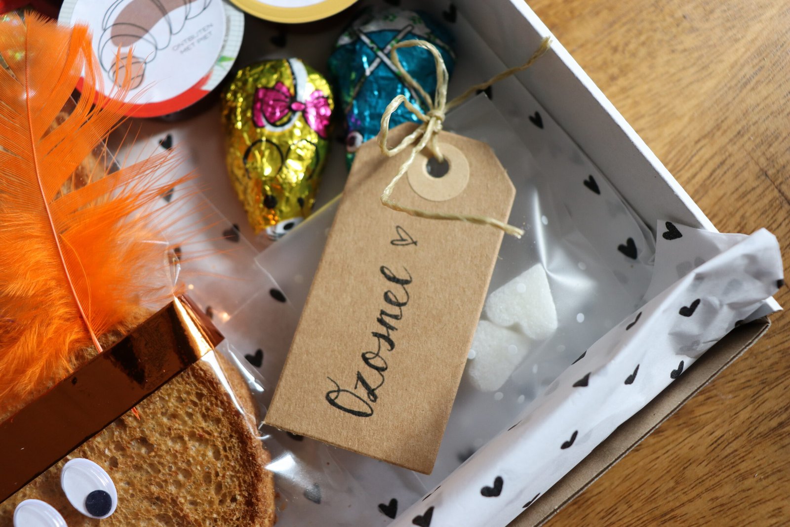 Je ontvangt bij jouw bestelling altijd een handgeschreven kaartje. Wil je liever een persoonlijk filmpje met een boodschap van Ontbijtpiet, dat kan natuurlijk ook. Kies voor de optie ‘Gepersonaliseerd filmpje’ en ik gebruik de naam en de informatie die je in het opmerkingenveld achterlaat.